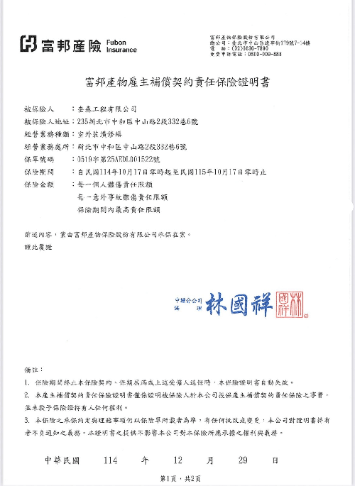 施工技師使用的皆為國際認證之合格裝備
