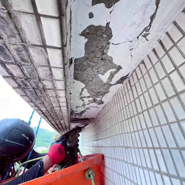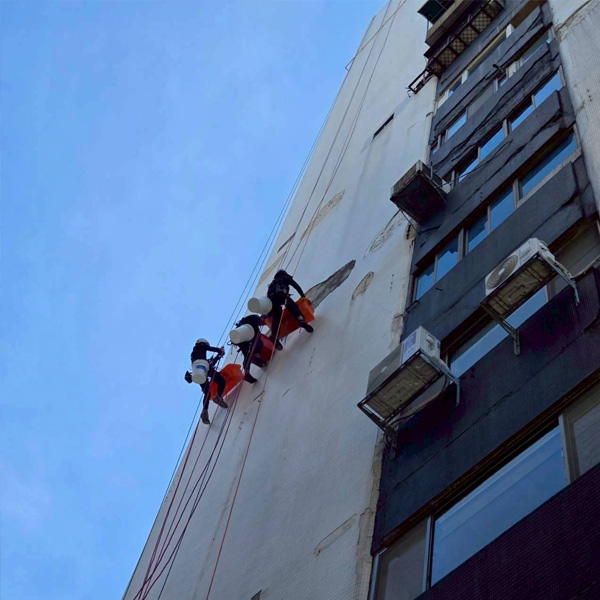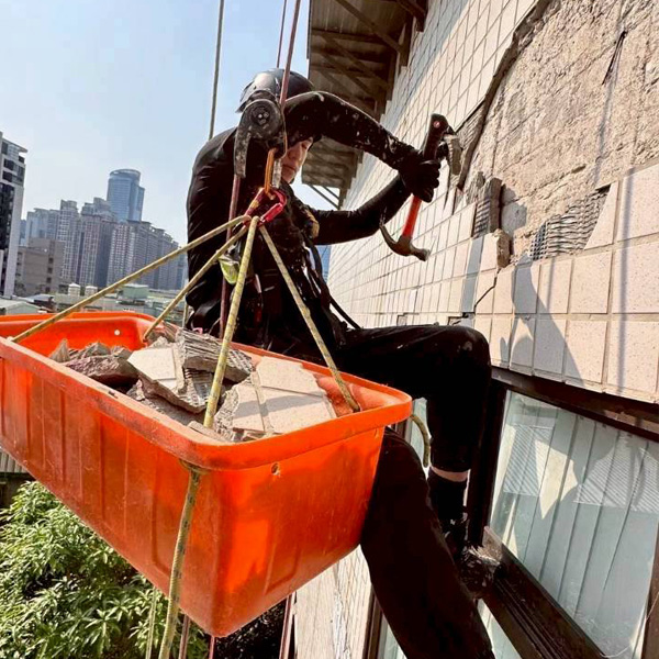 外牆懸掛物或結構脫落屬於極高風險之公共安全隱患,必須立即處置。針對此類突發狀況,本團隊具備極高的機動部署能力,能在評估後迅速抵達現場,布署安全封鎖線並展開拆除作業。 相較於傳統吊車受限於巷弄狹窄或封路申請等行政繁瑣,高空繩索技術具備「空間零限制、交通零影響」的絕對優勢。我們無需進駐大型重機具,即可深入巷弄死角,在最短時間內排除威脅,守護行人安全。