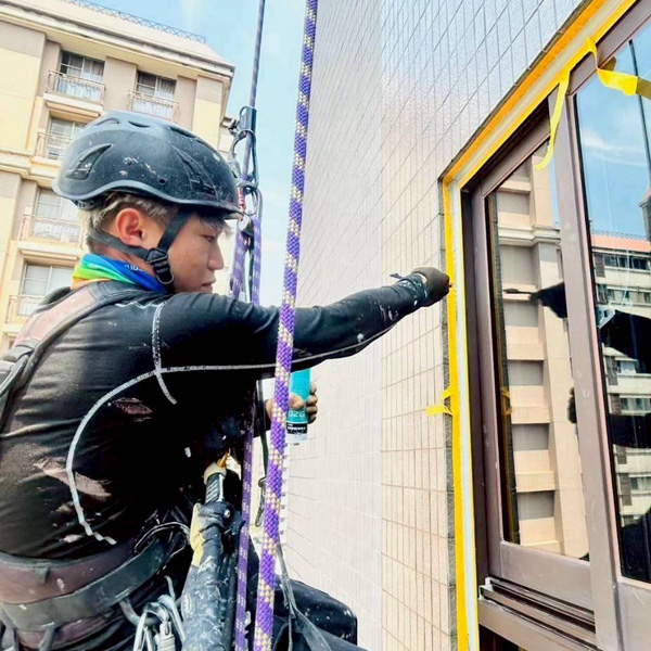我們運用高空繩索技術,深入傳統鷹架難以觸及的細部節點。針對不同基材(石材、鋁合金、玻璃)選用專業級高耐候建築矽利康,在解決滲水問題的同時,更兼顧線條的平整度與外觀整潔,讓您的建築質感由內而外獲得提升。