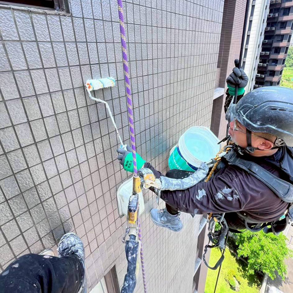 高品質的防水源於精細的預處理。施作前,我們會先進行牆體結構評估,若無結構性損傷,即進行高壓水沖洗以清除表層髒污與粉塵,並確保基面完全乾燥達 48-72 小時,以達最佳附著力。