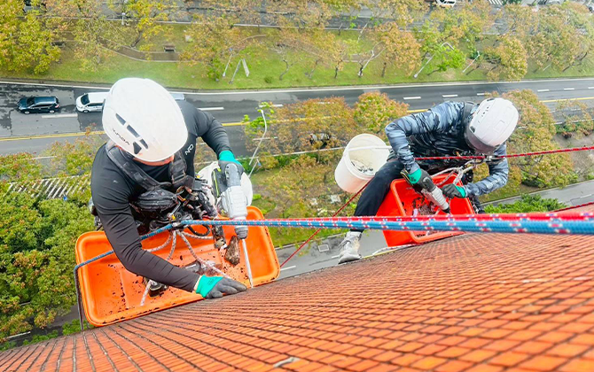 包含外牆檢測、掉落磁磚回貼、已脫落之混凝土空洞以高強度無收縮水泥或防裂砂漿進行抹平。避免外牆掉落,延長建物外觀壽命。