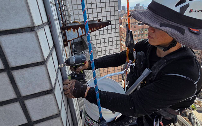 針對老舊招牌、鐵架、磁磚或外牆鬆動構件,採局部切割、精準拆除,降低大型機具施工之風險以及不便。